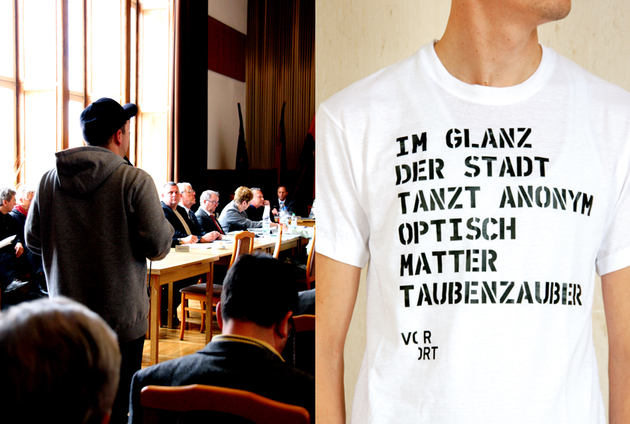Die Bachelorarbeit von Alexander Lech ist Grundlage für den großen Erfolg des Experimentes VorOrt-Haus und Antwort auf die Frage: Was kann Kommunikationsgestaltung im städtischen Kontext bedeuten und leisten? Leerstand beleben, die Nachbarn einladen, Möbel bauen mit dem Oberbürgermeister, eine Anfrage im Stadtrat und die Teilnahme an Ausschusssitzungen waren neben der Entwicklung des Erscheinungsbildes für das VorOrt-Haus Teil der Arbeit. In Buchform entstand eine umfangreiche Dokumentation des Projektes.